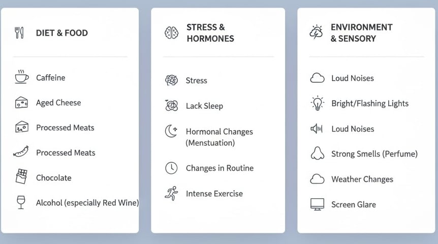 It's important to remember that triggers don't actually cause the underlying condition of migraine, but they can initiate an individual episode.