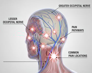 This is a headache caused by irritation or injury to the occipital nerves, which run from the top of your spinal cord up to your scalp.